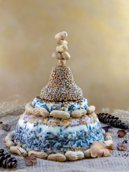 Ook vogels zijn dol op pindakaas, maar dan niet op de gewone, maar op de speciale, zoutloze vogelpindakaas, die nu in veel supermarkten verkrijgbaar is. Misschien heb je in ons tuincentrum in Wommels al zo’n speciaal hangkastje voor vogel-pindakaas gekocht, waar de pot precies in past. Anders kun je gedroogde dennenappels of lege rollen wc-papier volsmeren met vogelpindakaas en deze eventueel nog door een schaaltje vol vogelzaden rollen. Rijg een stevig touw of draad rond de dennenappels of wc-rolletjes en knoop ze met een lus aan een boomtak of aan de pergola.